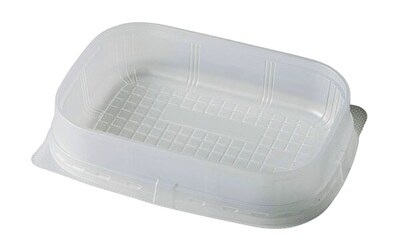 | サイズ | 本体:170×120×42mm 中皿:178×130×35mm 中皿用嵌合フタ:161×111×8mm フタOPS:175×122×26mm 紙フタ:172×123×17mm 容量(本体):約500㏄ 容量(中皿):約370㏄ |